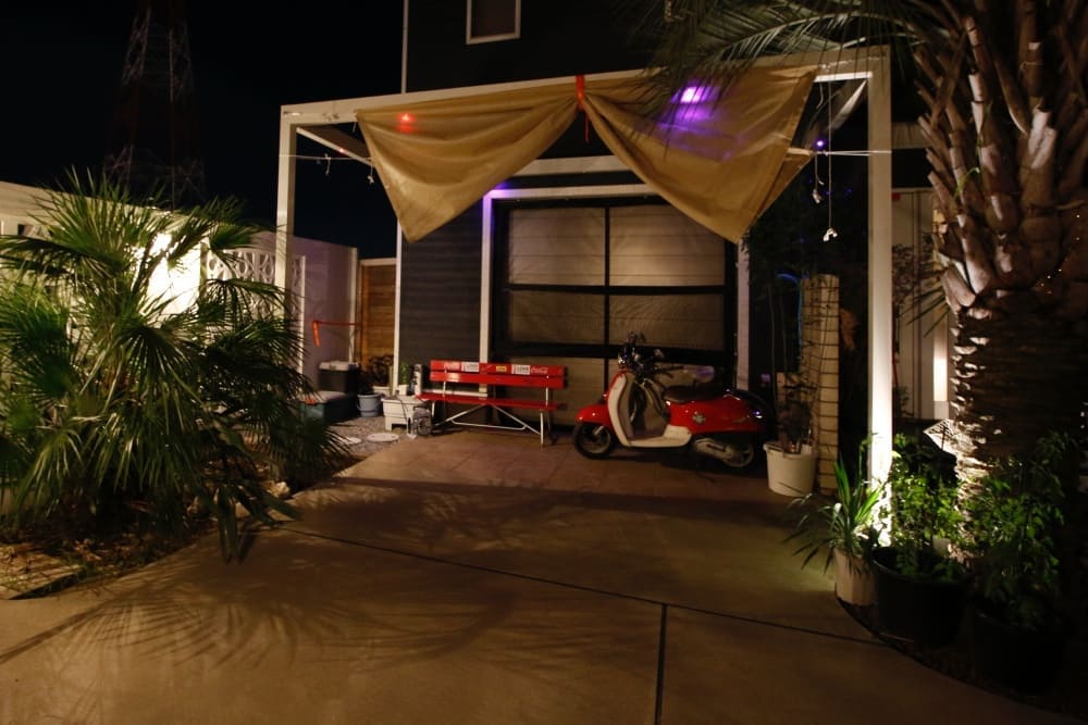 花ブロックは、南国の生命力ある雰囲気や活気が表現され、多様な花々を思い起こさせ、目に鮮やかな印象を残します。 高く伸びる椰子の幹と、その上に広がる特徴的な葉が、輝く南国の景観を象徴しています。光との対比によって、暖かい気候やリゾート感を強調します。